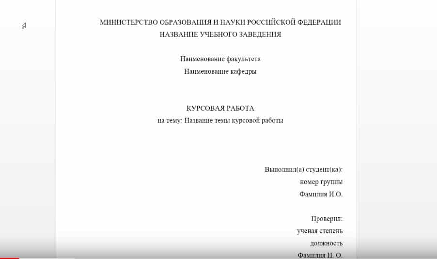 Независимо от выбранного вида, курсовая пишется по определенному шаблону. Чтобы понять, как правильно оформить курсовую работу, образец можно скачать или получить у научного руководителя, если у последнего отличаются требования.