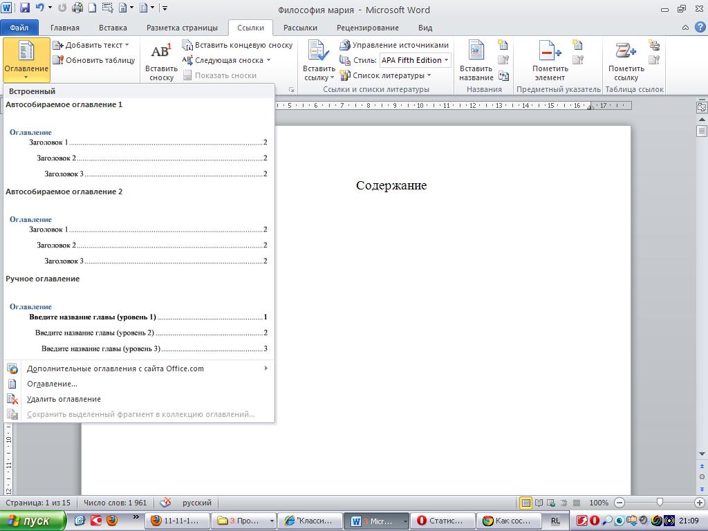 Учимся вместе Как сделать содержание (оглавление) в Word 2010?