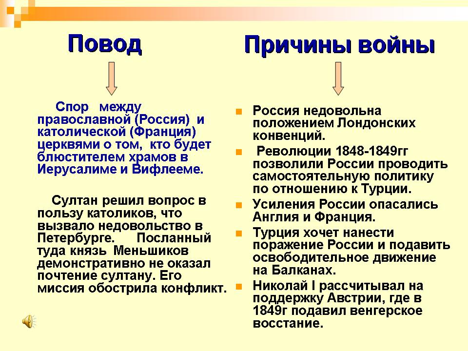 Повод и причины Крымской войны