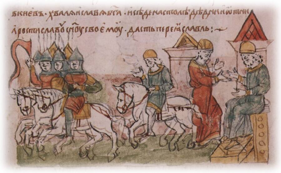 Утверждение Юрия Владимировича Долгорукого в Киеве. 1149 год. Миниатюра Радзивиловской летописи