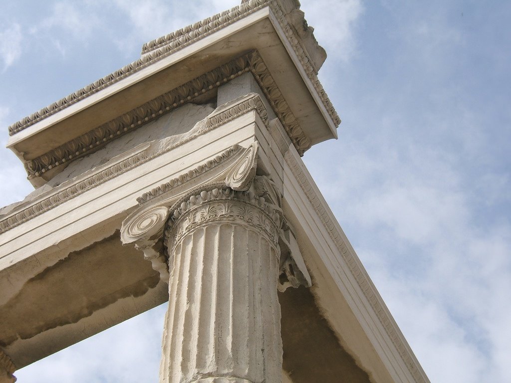 Приравнивание ионной колонны к стройному телу женщины было распространенным понятием в Древней Греции . Дорические колонны отождествлялись с мощной фигурой человека; такие мужские скульптуры известны как атласы или курои .