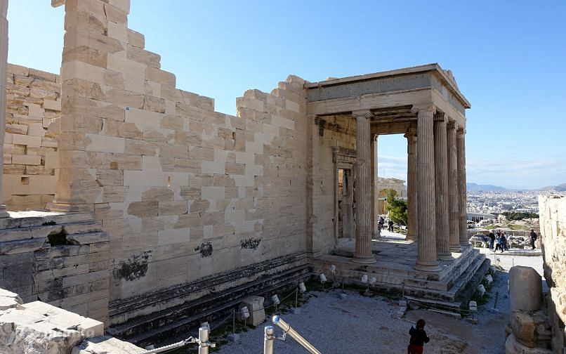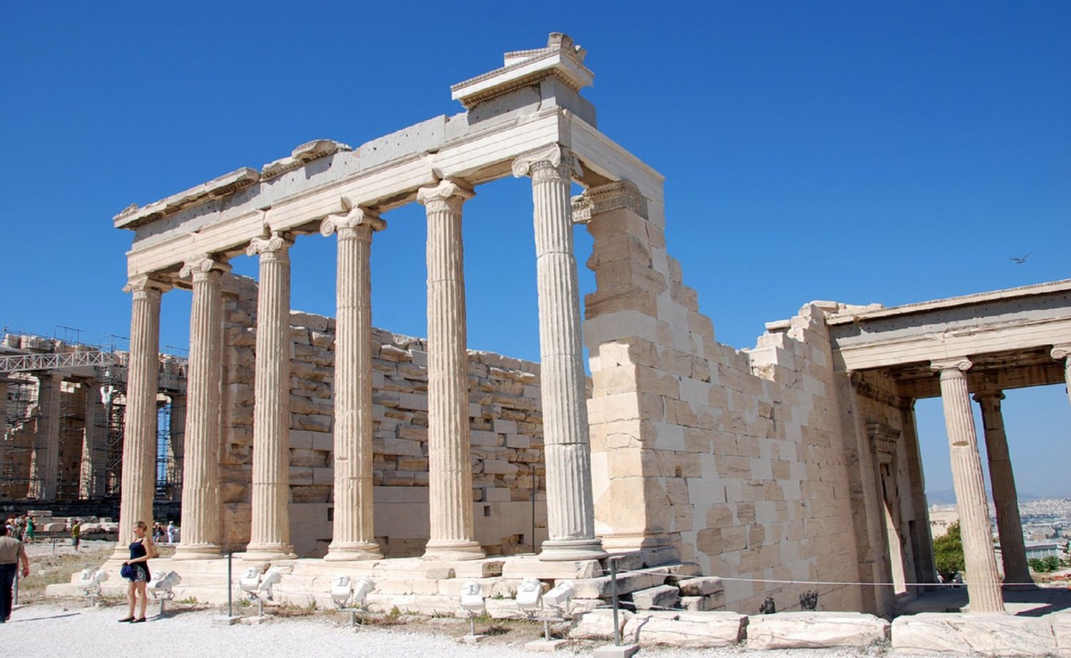 Идея постройки храма в священном месте принадлежала Периклу, но реализовали её уже после его смерти. Строительство началось в 421 году до н.э. Автором проекта и руководителем работ был Мнесикл, зодчий, создавший парадный вход на Акрополь – Пропилеи.