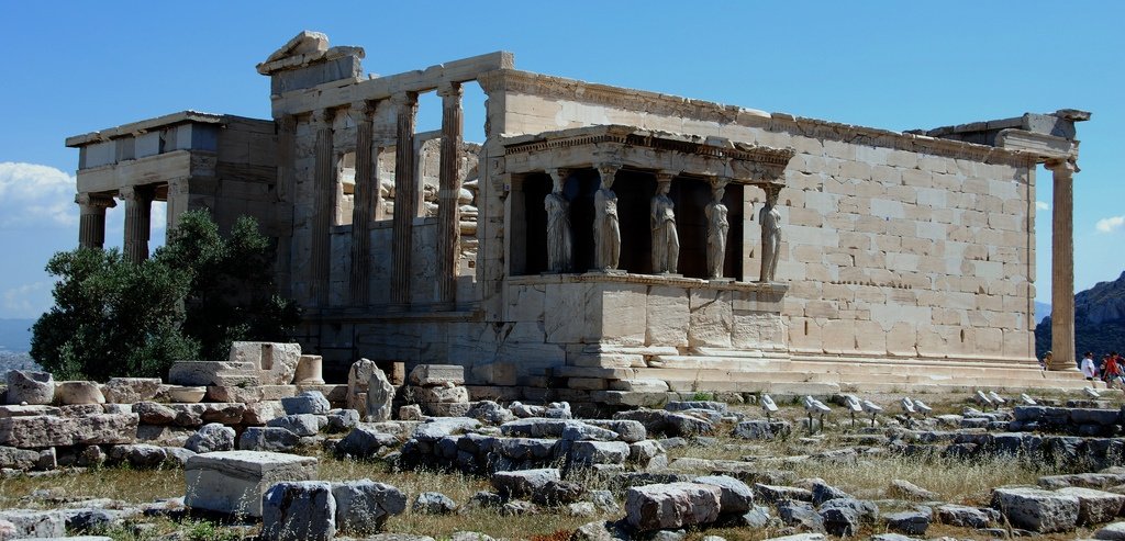 Эрехтейон был задуман Периклом и был частью грандиозного строительства в Акрополе. Но пелопонесская война отодвинула эти планы, и возведение храма началось только в 421 году до н.э. уже после смерти государственного деятеля. Спустя пару лет стройка была заморожена, но в 406 году строительство все же было завершено. История хранит в тайне имя гениального архитектора, но археологи все чаще приписывают авторство Мнесиклу и Фидию.