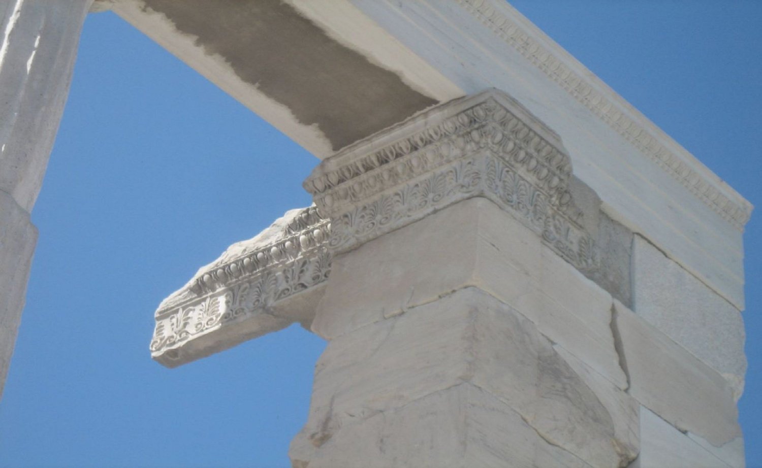 На Афинском акрополе, в Эрехтейоне, женственный ионический ордер получил свое наивысшее воплощение во всем своем многообразие. Здесь присутствуют два варианта антаблемента: с фризом (восточный и северный портик) и без него (в портике Кариатид); последний отражает более древнюю конструкцию ионического архитрава, восходящего к деревянным прототипам. Наиболее древние архаические ионические храмы не имели фриза; балки перекрытия и карниз непосредственно опирались на архитрав.