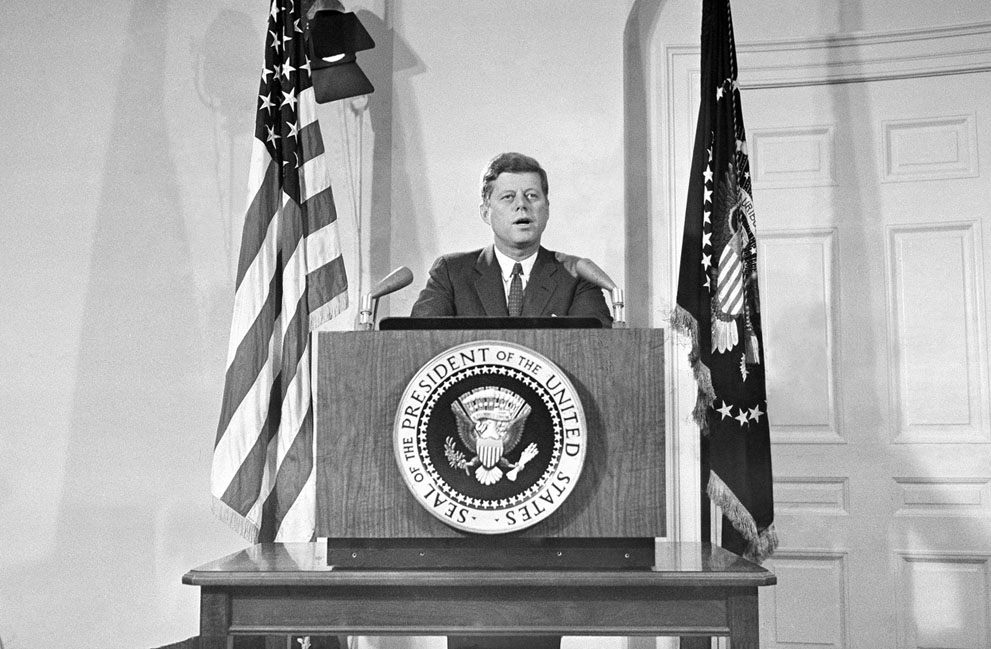 Кеннеди объявляет о введении блокады Кубы. (wikipedia.org)