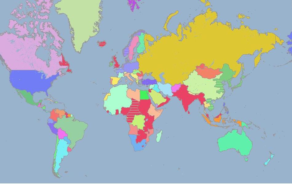 На карте мира 1943 года (разгар второй мировой войны) — показаны