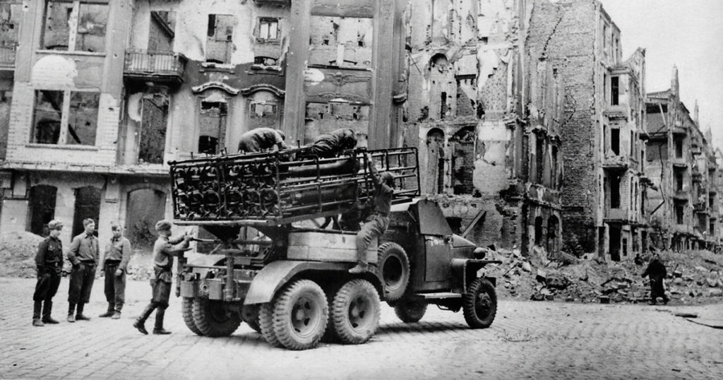 Солдаты, заряжающие «Катюшу»