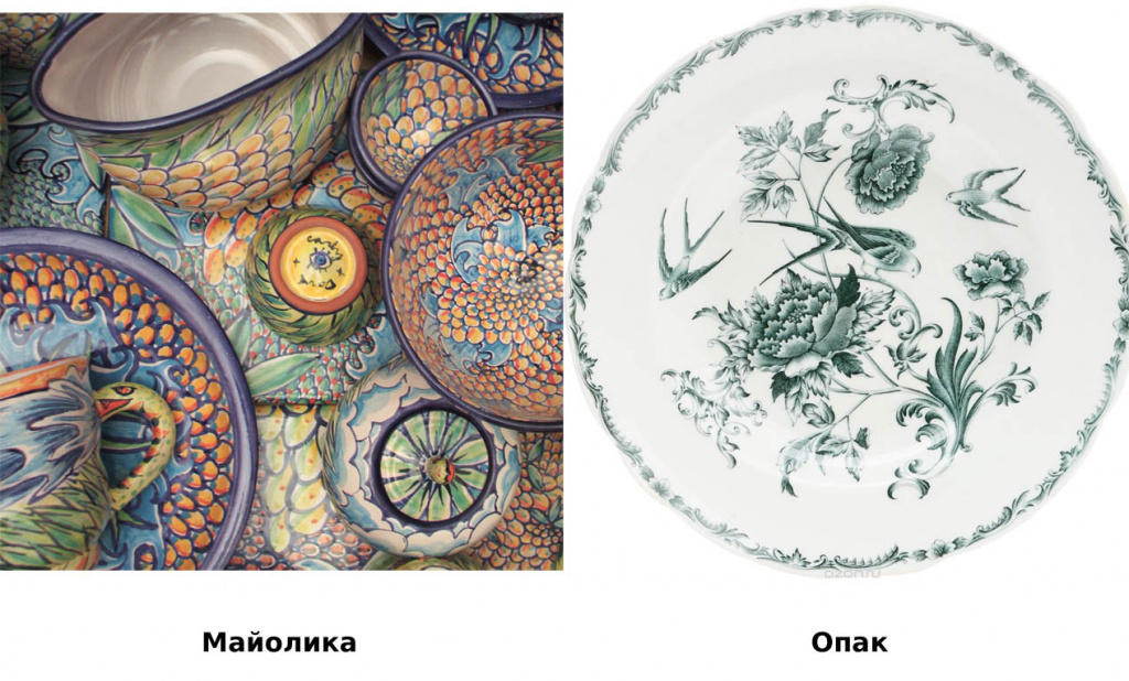 В целом же по сложности технологического процесса и стоимости виды керамики можно расположить в следующем порядке (от дешевых к дорогим): майолика — фаянс — опак — фарфор.