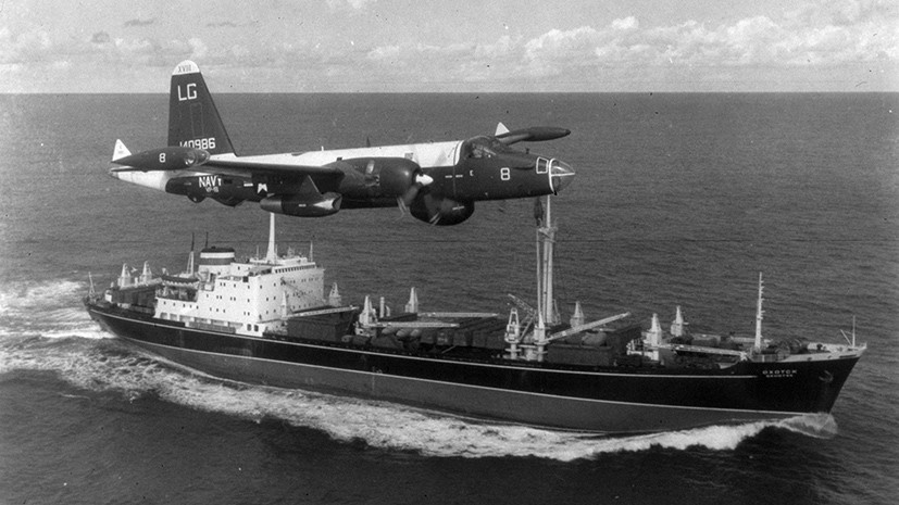 - Патрульный самолёт США P2V Neptune сопровождает советское грузовое судно во время Карибского кризиса в 1962 году