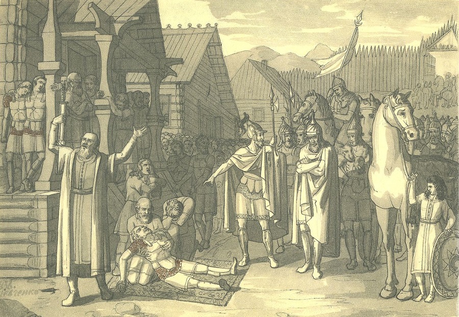 В 970 году, незадолго до своей гибели, великий князь Святослав поделил Русь между тремя своими сыновьями: Киев был отдан на княжение Ярополку (?— 11.06.978 г.), Овруч, центр Древлянской земли, — Олегу (955–977 гг.), а Новгород — Владимиру.