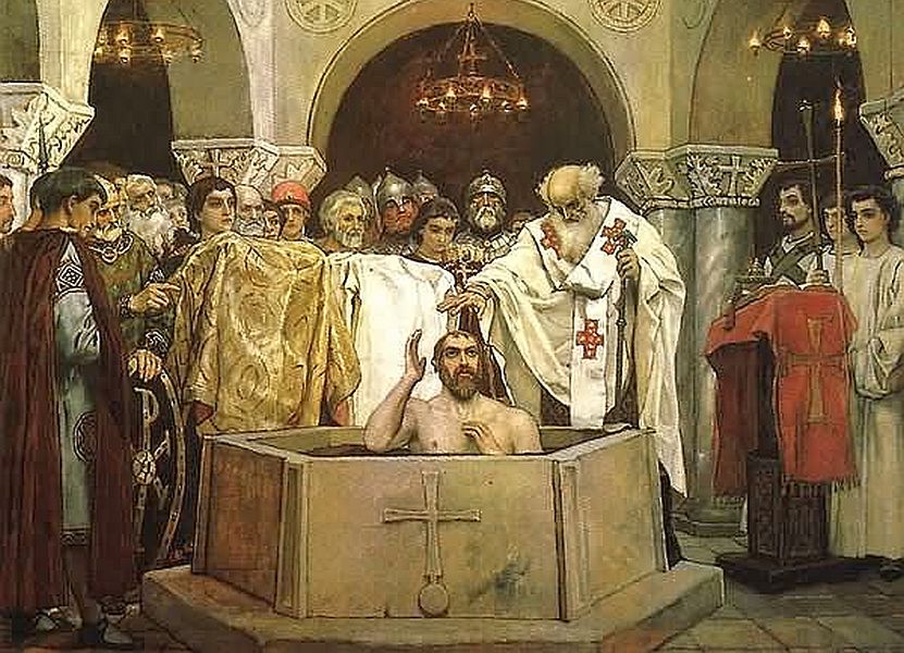 Летописи говорят о том, что решение о крещении русского государства «по закону греческому» принято в 987 году князем Владимиром на совете бояр. При этом крещению Руси предшествовало крещение самого князя Владимира.