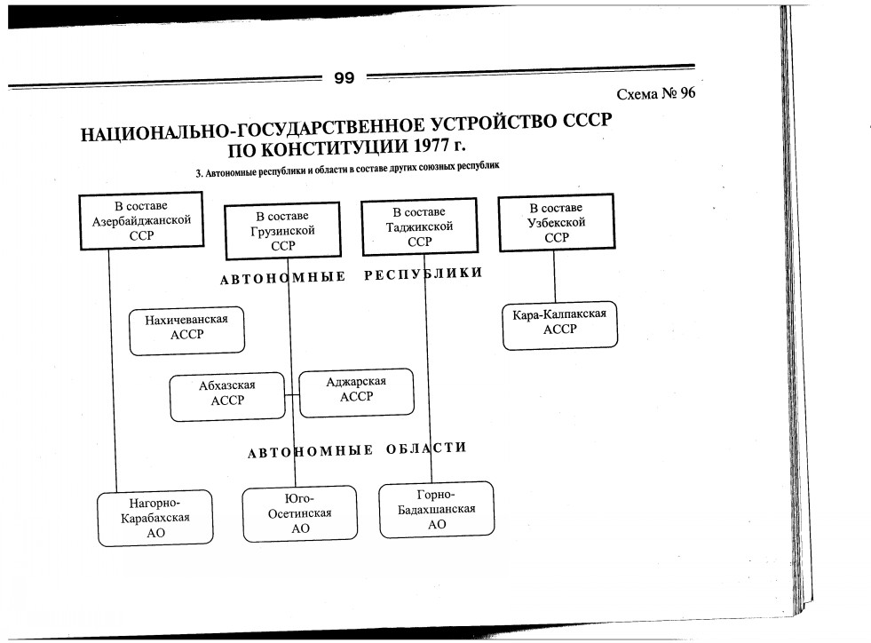 По Конституции 1977 года некоторые республики СССР включали в свой состав другие автономные республики и области. Так, Нагорно-Карабахская автономная республика входила в состав Азербайджанской ССР, а Аджарская – в состав Грузинской ССР.