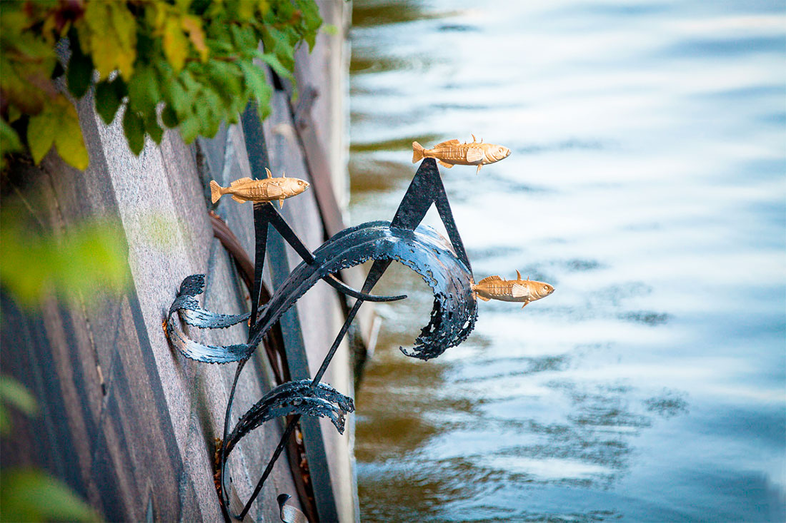 Возле Синего моста, переброшенного через Обводный канал, напротив Кронштадтского футштока находится необычный памятник колюшке. Эта колючая рыбешка, которую до войны и за рыбу не считали, во время блокады спасла тысячи жизней. Ее ловили сачками, потому что ни одни сети не могли удержать мелкую рыбку. Из колюшки варили уху, делали фарш и жарили котлеты.