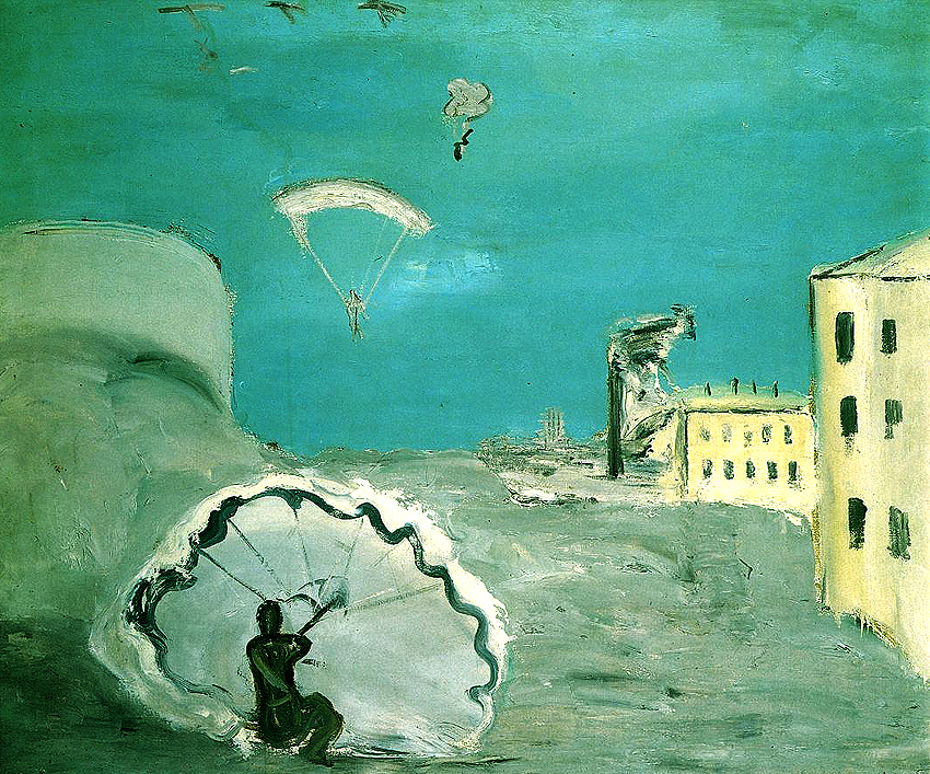 Александр Древин «Спуск на парашюте». 1932 год. Холст. Масло