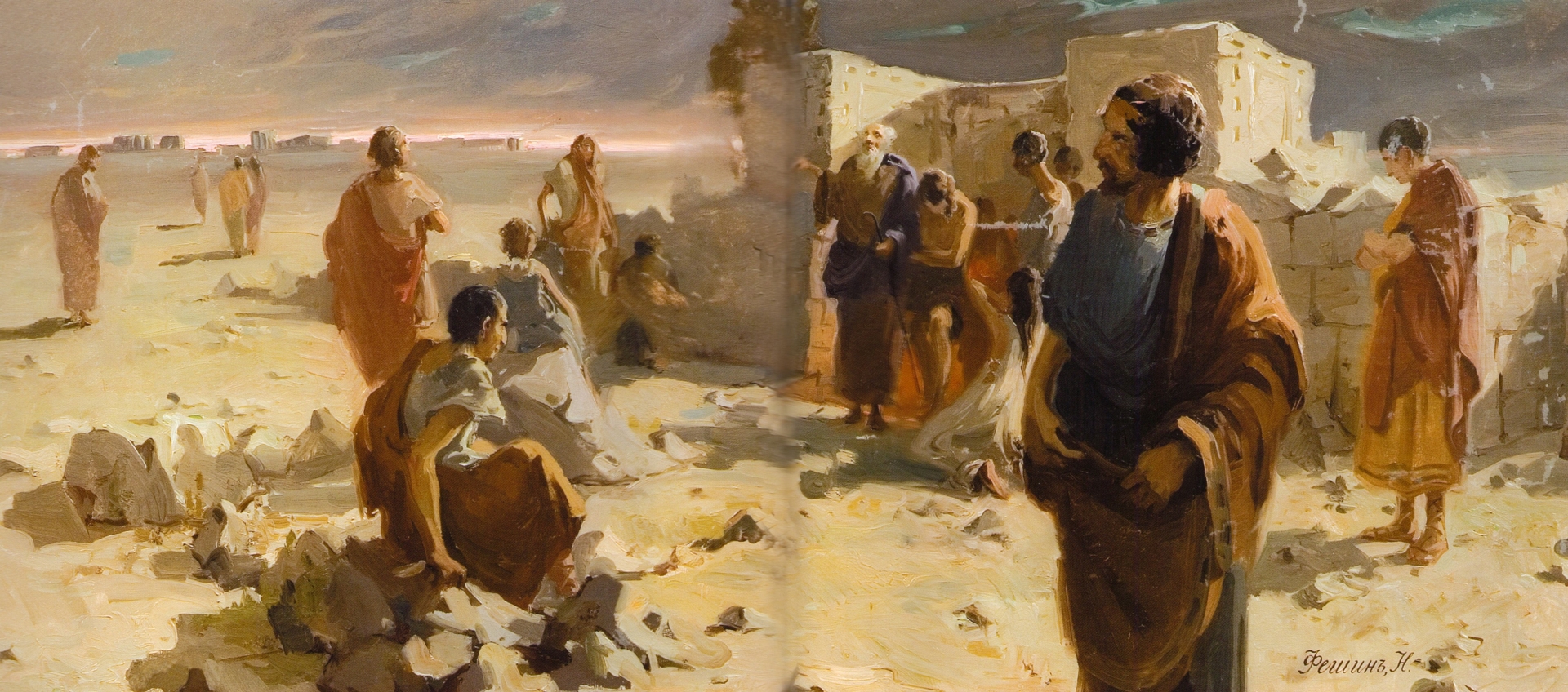 Н. И. Фешин «Выход из катакомб после моления» (1903). Первая трудность, которая возникла перед христианами практически в самом начале и затем постоянно присутствовала в их жизни вплоть до IV века, исходила извне – от гонителей и врагов Церкви