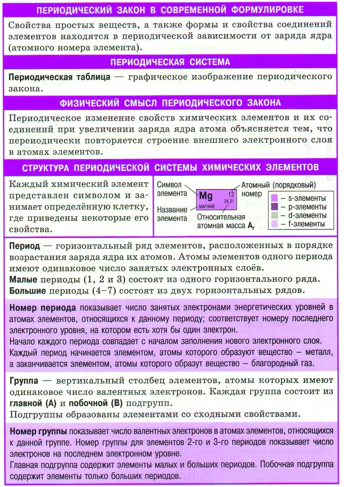 Свойства химических элементов, а также формы и свойства образуемых ими веществ и соединений находятся в периодической зависимости от величины зарядов ядер их атомов.