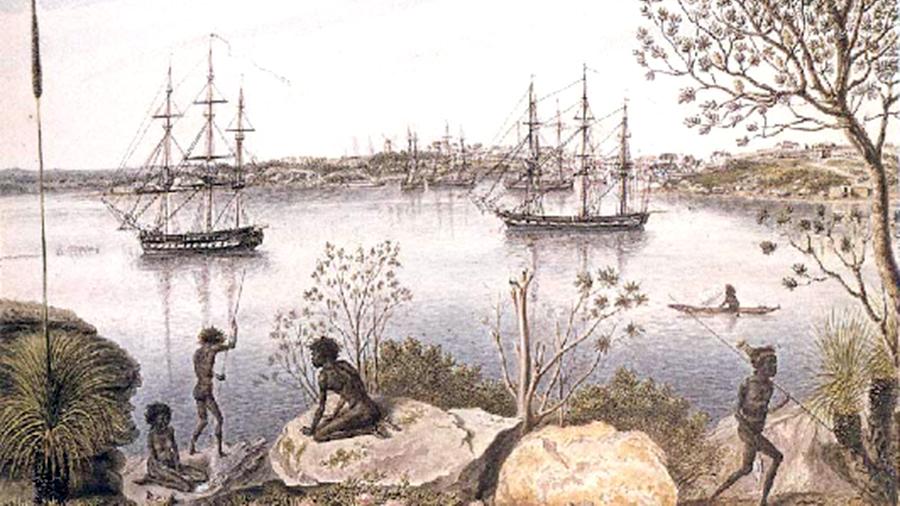 Вид Сиднея. Акварель из альбома П. Михайлова