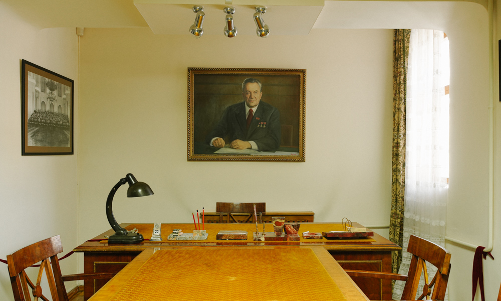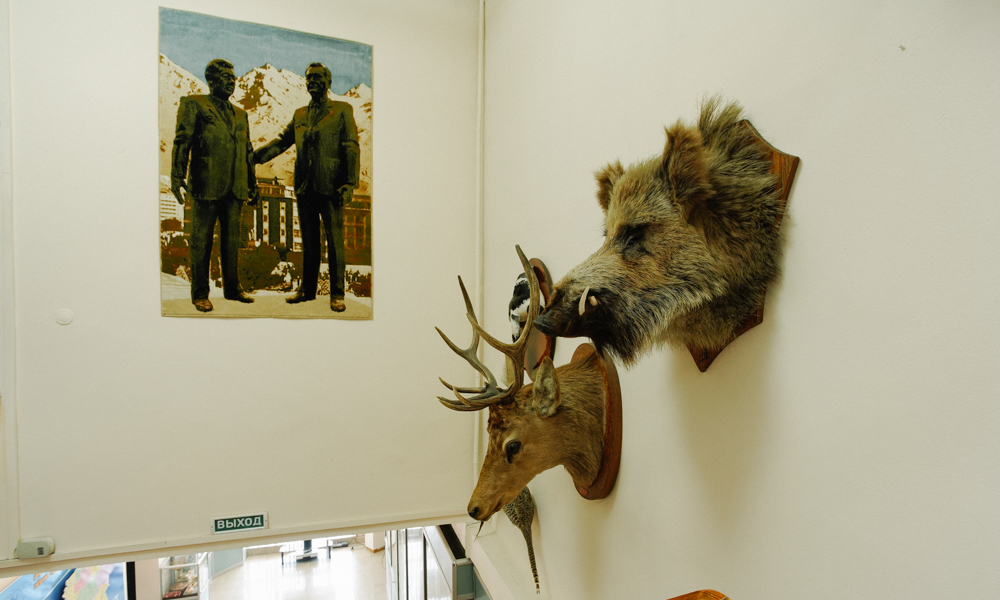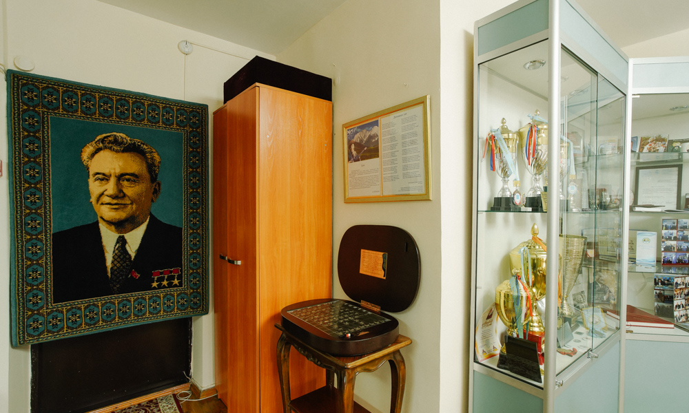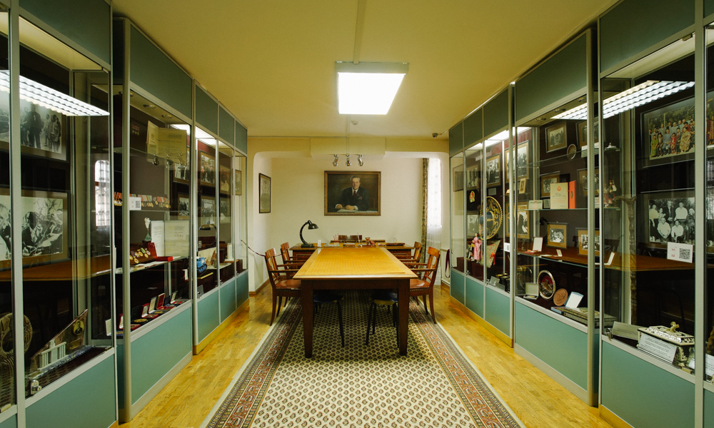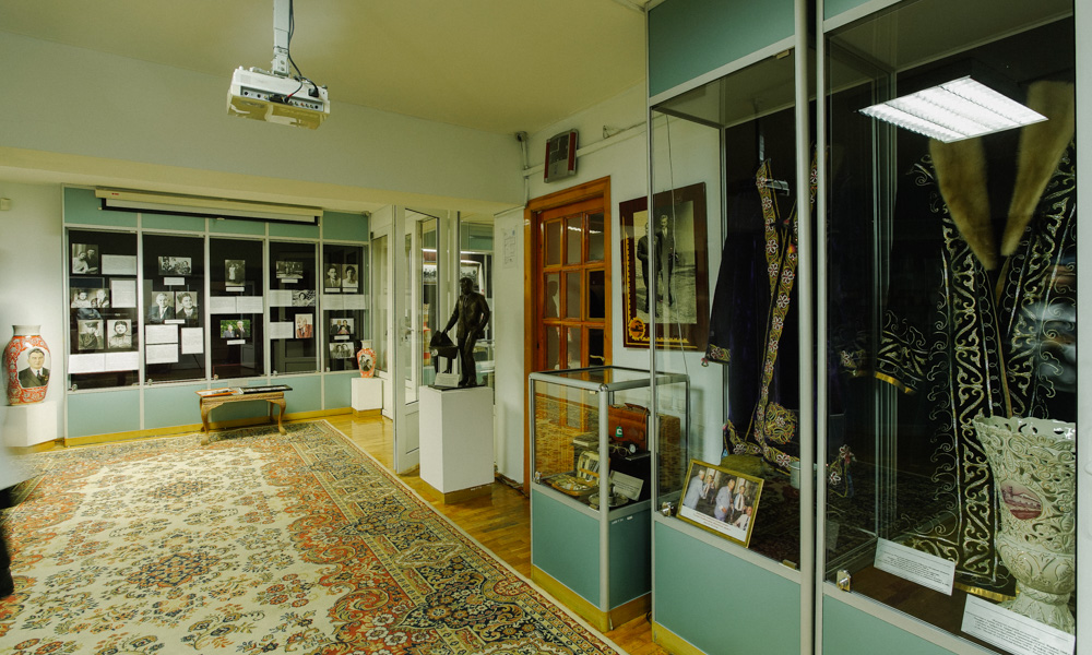Последний зал посвящен дипломатической деятельности. Кунаев входил в десятку выдающихся людей столетия, подтверждающий это звание документ висит здесь. Динмухамед Ахмедович часто ездил в дипломатические поездки, не только как Первый секретарь ЦК Компартии КССР, но и во главе всей советской делегации. Здесь же вы можете увидеть рабочий и переговорный столы Кунаева, которые стояли в Доме правительства (сейчас – здание КБТУ).