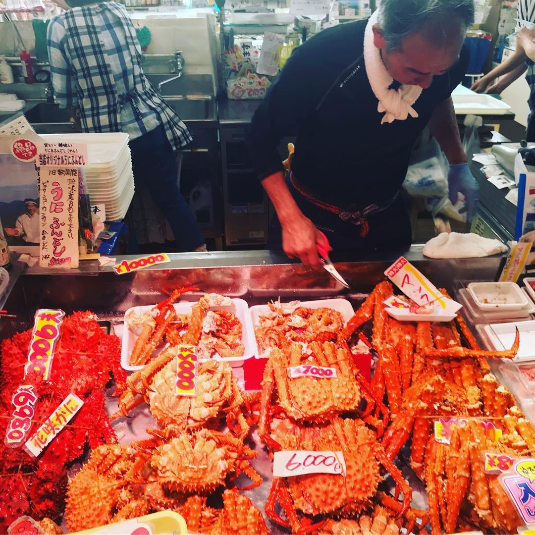 А это цены на крабов – от 5 до 9 тысяч иен (по-нашему от 3,8 до 5 тысяч рублей).