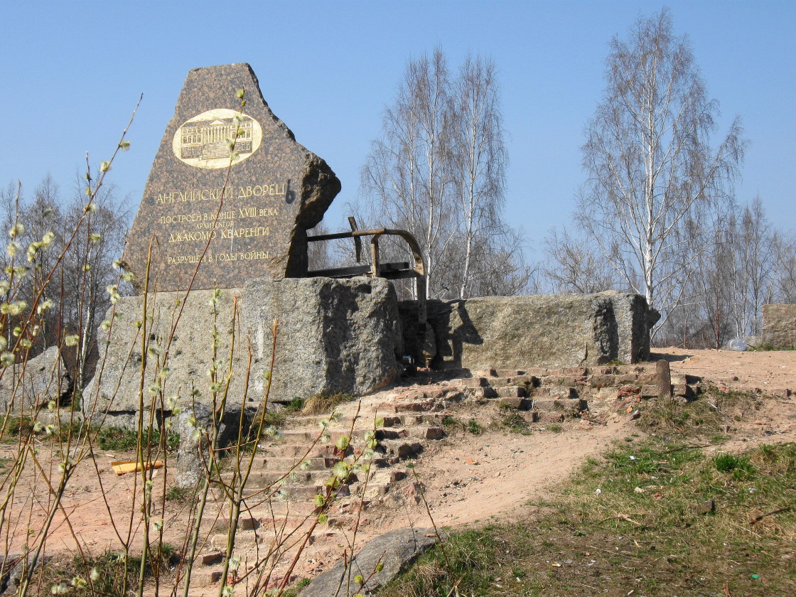 Английский дворец стал первой значительной постройкой Кваренги в России, но вы никогда его не увидите в первозданном виде. Во время Великой Отечественной войны дворец был уничтожен артиллерийским обстрелом 291-й немецкой пехотной дивизии, и от прекрасного здания остались только руины. Сохранилось лишь несколько фотографий первой половины XX века.