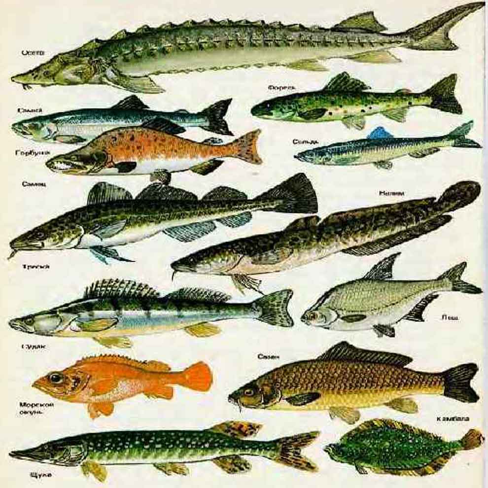 Виды настолько разнообразны, что я приведу только несколько примеров из числа наиболее известных нам рыб: