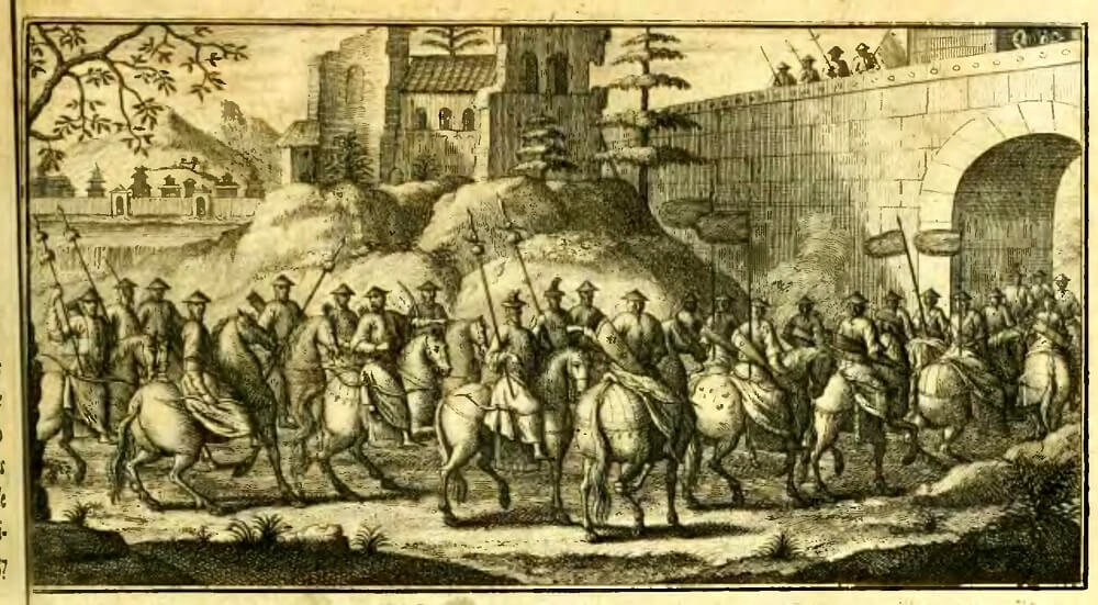 Гравюра из издания «Ла Хэя» (описание Китая), IV век. Крыло “Татарской” ,то есть Маньчжурской конницы.