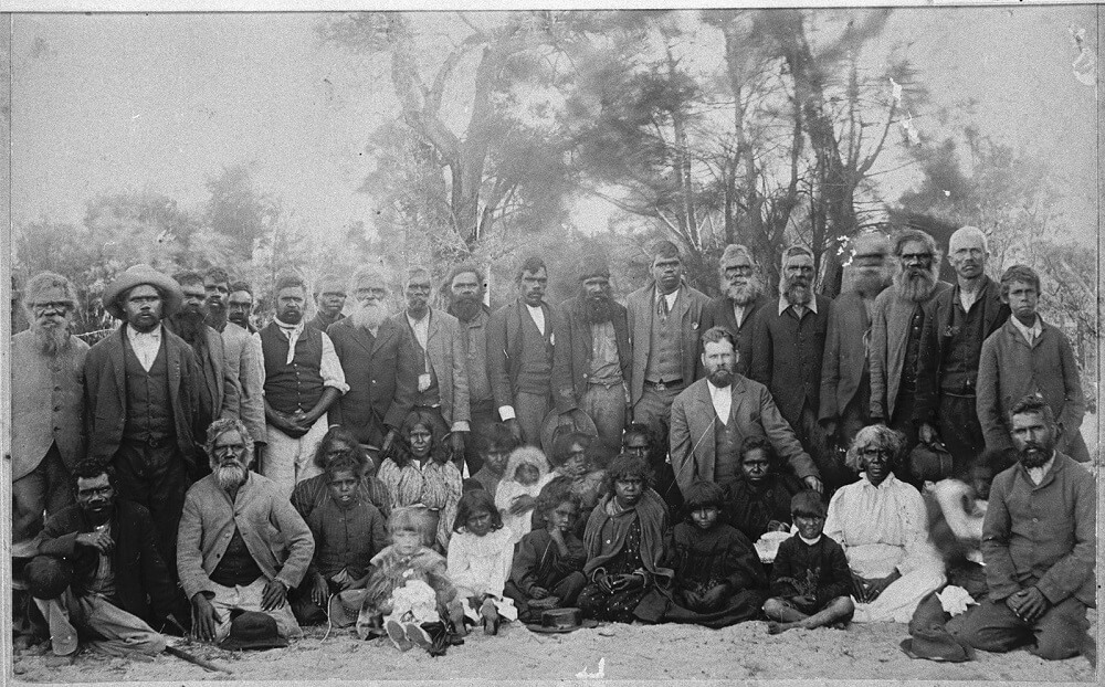 Групповой портрет Нунгарских мужчин, женщин и детейМестонахождение: Государственная библиотека Западной Австралии
