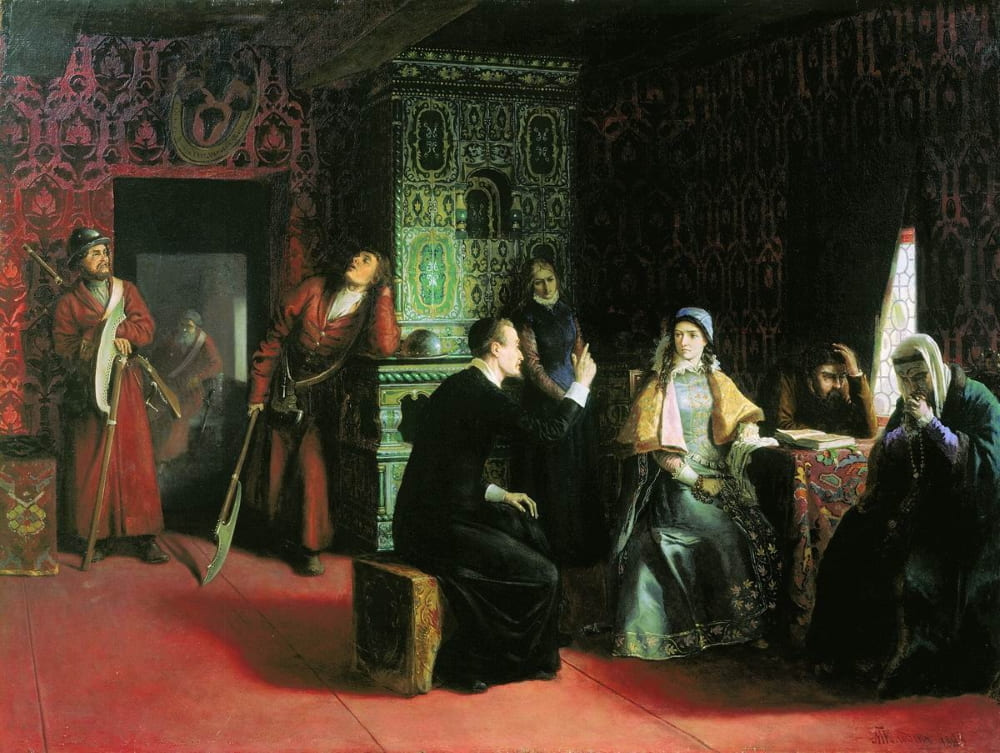 Леон Вычулковский «Марина Мнишек и ее отец Ежи Мнишек в ссылке в Ярославле»