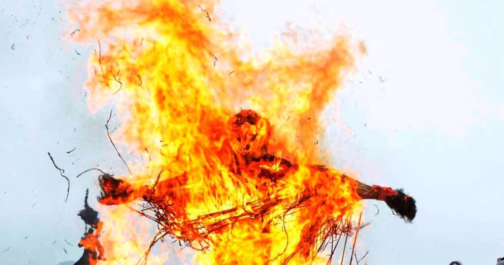 И наконец огонь. Сжигание чучела зимы на Масленицу