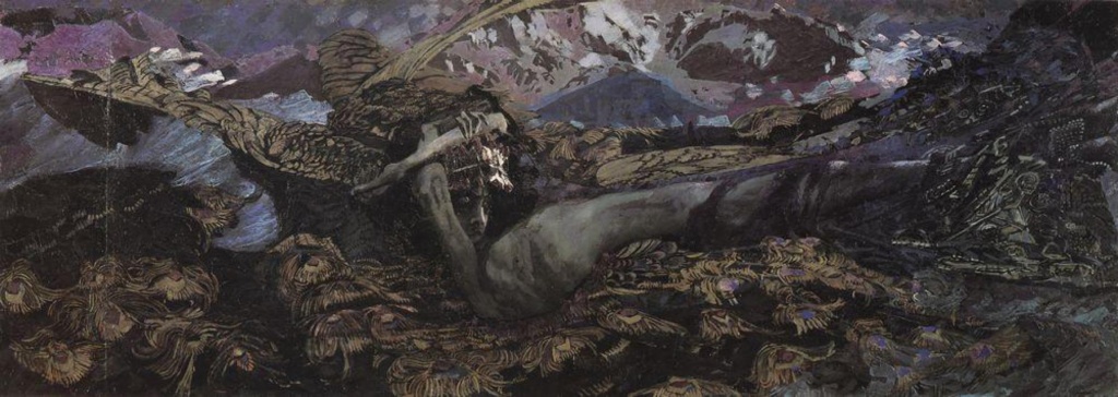 В 1890 году Врубель рисует свой первый шедевр «Сидящий Демон» (Третьяковская галерея), а через два года «поверженного демона». Эти картины стали знаковыми для русского символизма.