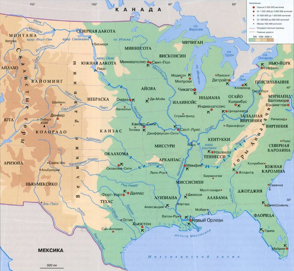 справа — Миннесота, Миссури, Арканзас, Ред-Ривер; слева — Висконсин, Иллинойс, Огайо.