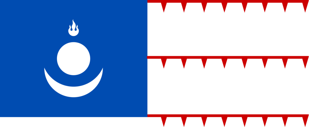 Империя монголов имела свой флаг. История знает две империи (первая и вторая), которые в общей сложности просуществовали три столетия (13-15 века) и к началу 16-го века полностью ушли в историю.