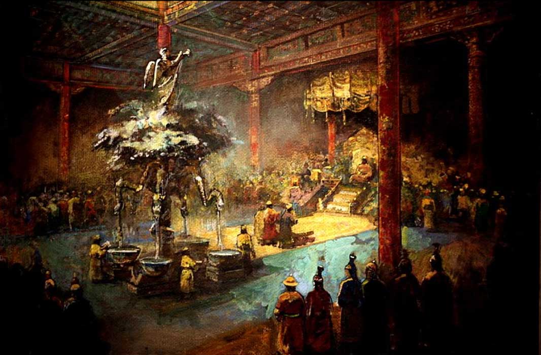 Дворец в Каракоруме, столице империи. Виден легендарный фонтан в виде серебряного древа.
