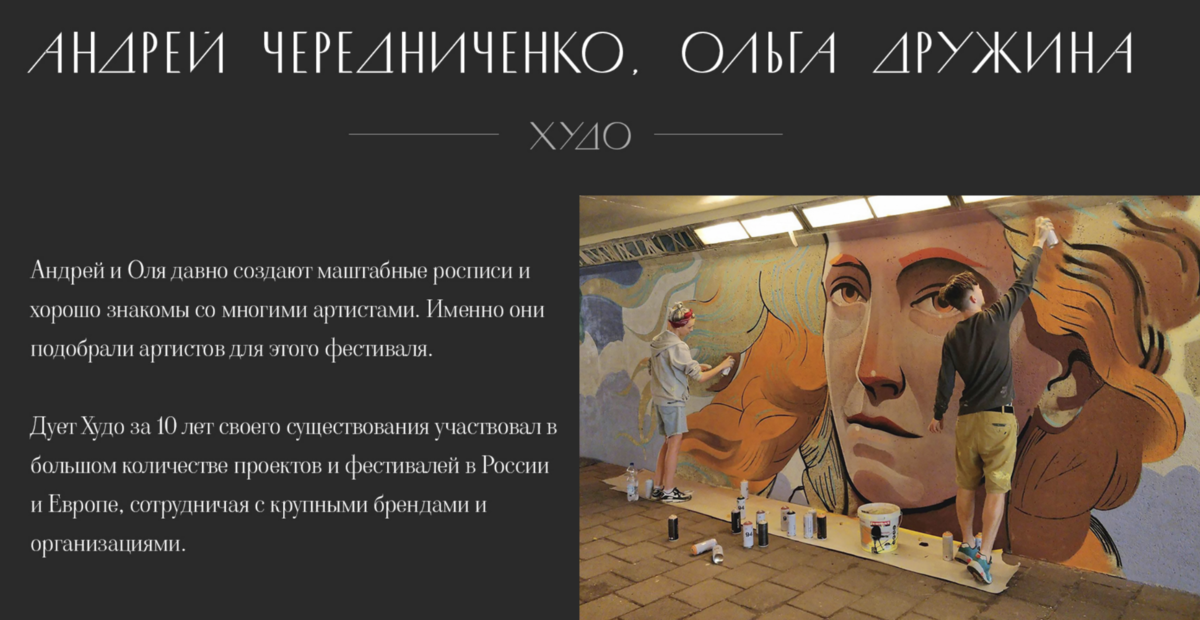 По плану креативного кластера «Стачка», выступившего организатором фестиваля стрит-арта и уличной культуры, именитые художники — частые гости международных фестивалей и биеннале — распишут несколько стен Морозовских фабрик, добавив к привычному ландшафту бывшей промзоны свежесть и уникальность, но сохранив при этом их идентичность.