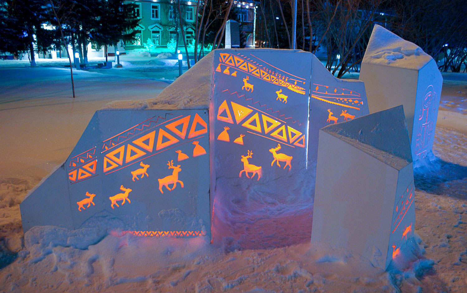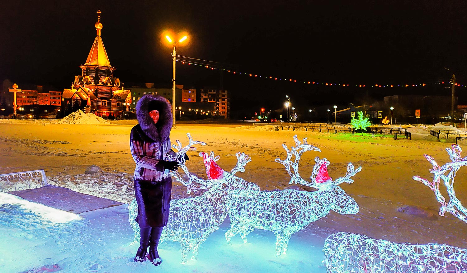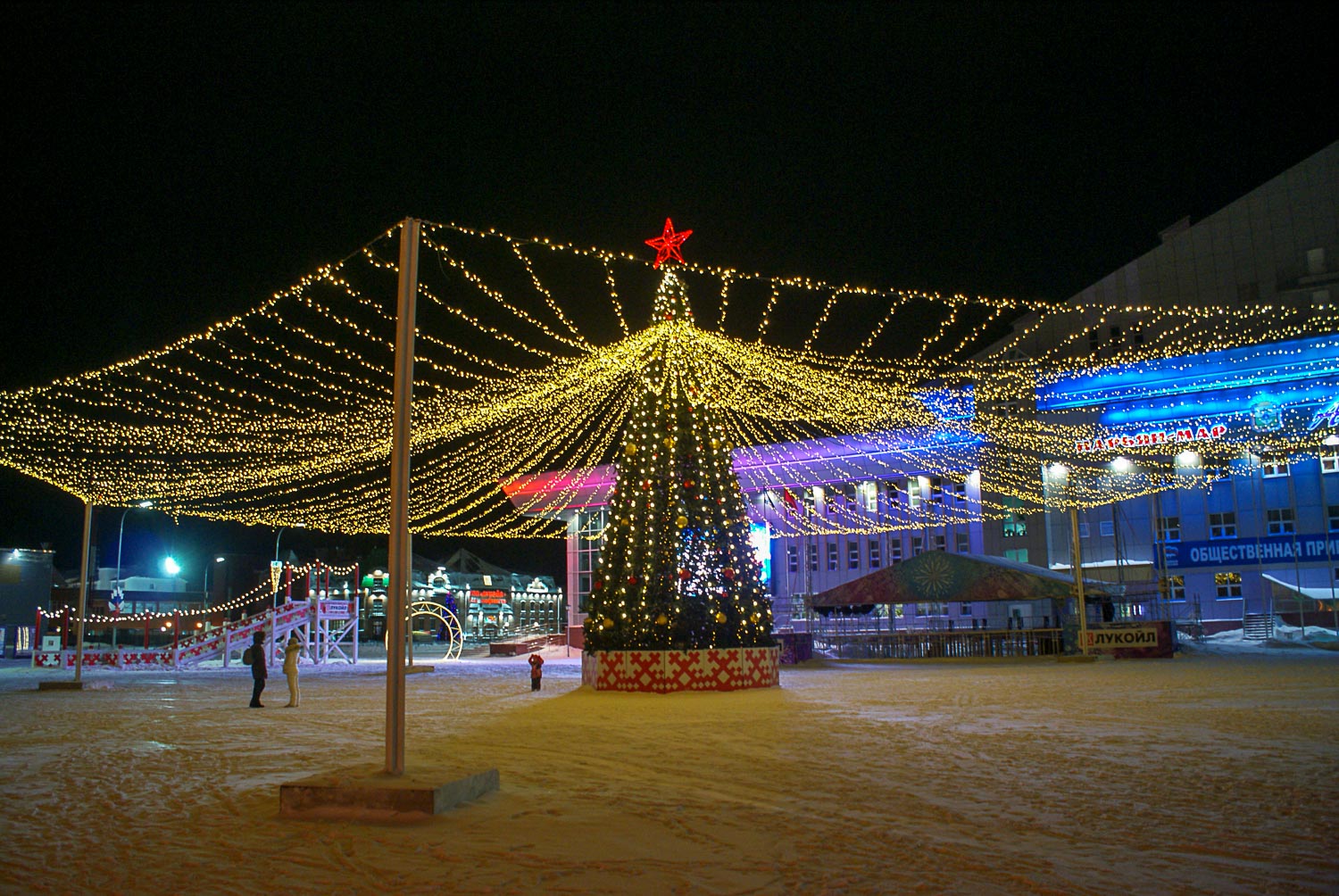 После заселения и ужина пошли гулять. Если вы думаете, что за полярным кругом темнота и пустота (а многие мои знакомые думали именно так), то ошибаетесь. Современный, отлично украшенный город. Со своими особенностями, но городок здесь совершенно привычный. Пожалуй, даже поярче многих. Как и дома. А все для того, чтобы раскрасить темные зимние будни.