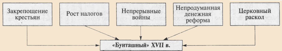 17 век называют «Бунташным» во многом из-за народных движений (бунтов и восстаний), которые возникали с большой регулярностью и отличались размахом. В Бунташный век было 6 крупных восстаний (одно называется крестьянской войной) и огромное количество мелких восстаний, которые даже сосчитать невозможно. Основные народные движения той эпохи представлены в таблице ниже.