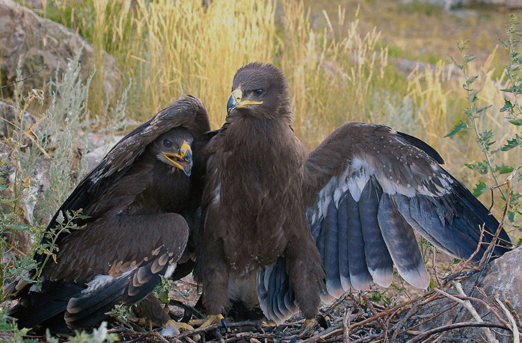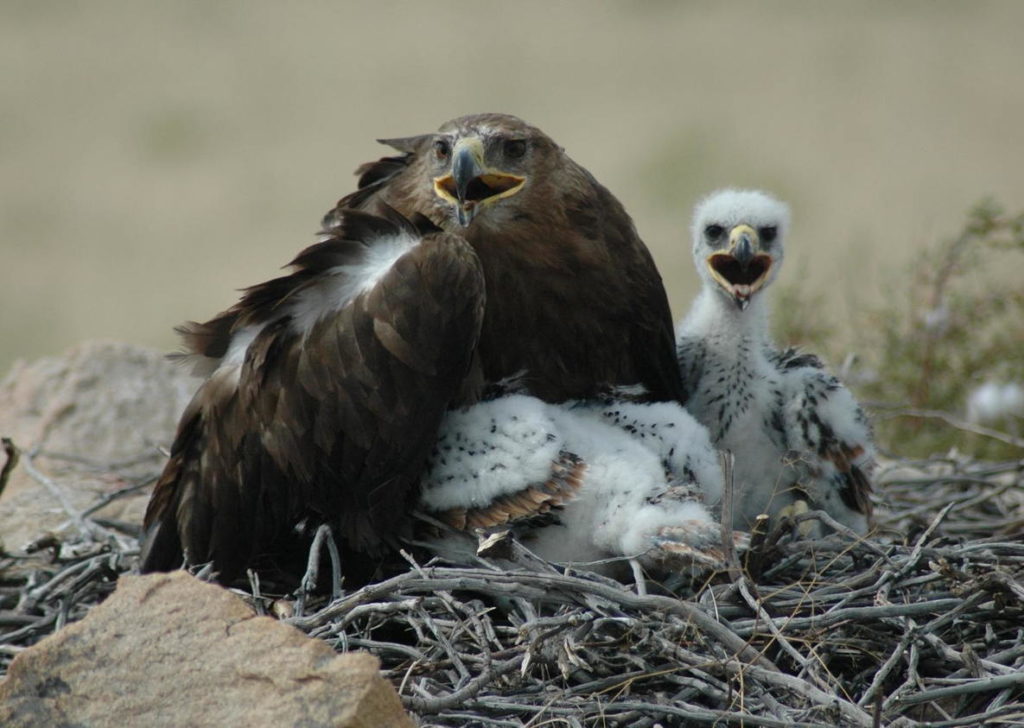 Чаще всего из нескольких птенцов выживает только один, так как более сильные детеныши стараются вытолкнуть слабых из гнезда. К двум месяцам конфликты между выжившими птенцами прекращаются. В 3-3,5 месяца они впервые пробуют летать и охотиться.