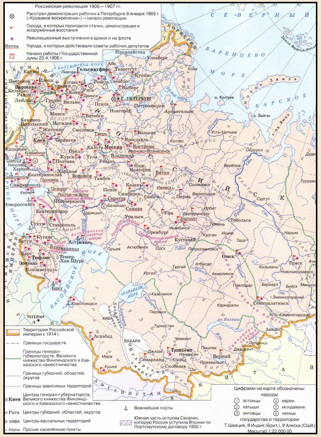 Мы рассмотрели территорию России в Европе, поскольку это был тот театр, где происходили основные действия той эпохи. Если говорить об Азии — там в составе России также были включены полностью все государства, которые в дальнейшем присоединились к СССР.