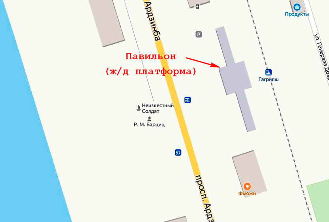 - Площадь Э. Капба: железнодорожная платформа «Гагрипш» (Павильон).