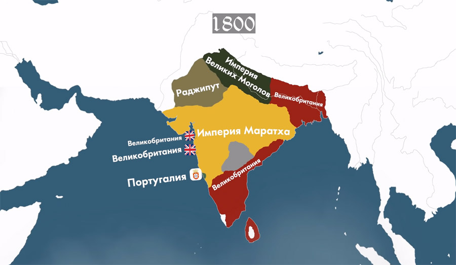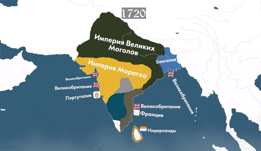 По мере ослабления Моголов, Королевство Маратха на центральном западе Индии начало создавать свою империю. Кризис Великих Моголов и постоянная борьба между князьями позволили англичанам усилить свои позиции.