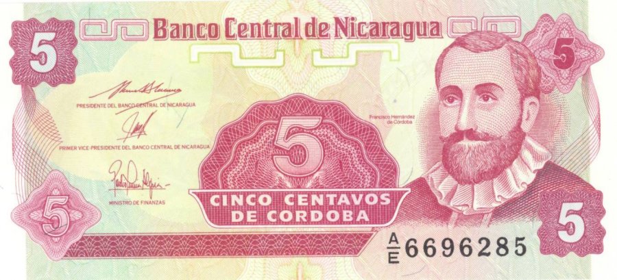 Золотая (новая) кордоба (международное обозначение — NIO, внутри страны — C$), равная 100 сентаво. В обращении находятся купюры номиналом в 100, 50, 20, 10, 5 и 1 кордоба, 25, 10 и 5 сентаво, а также монеты в 5 и 1 кордоба, 50, 25, 10 и 5 сентаво.