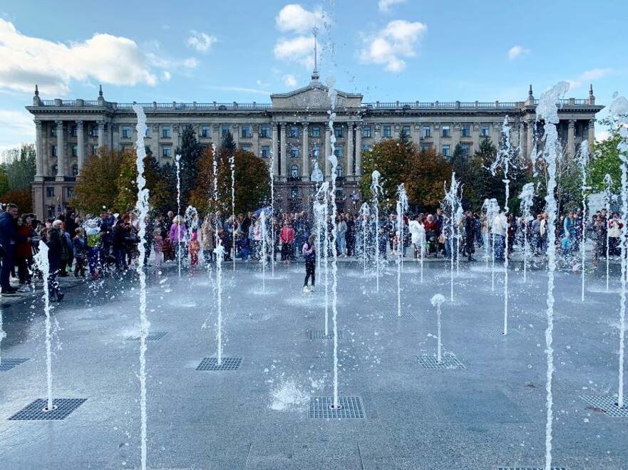 В 2019 году Соборную площадь полностью реконструировали. Вместо зеленых клумб и дорожек, появилось огромное пространство, которое покрыто плиткой, на которой расположили два фонтана.
