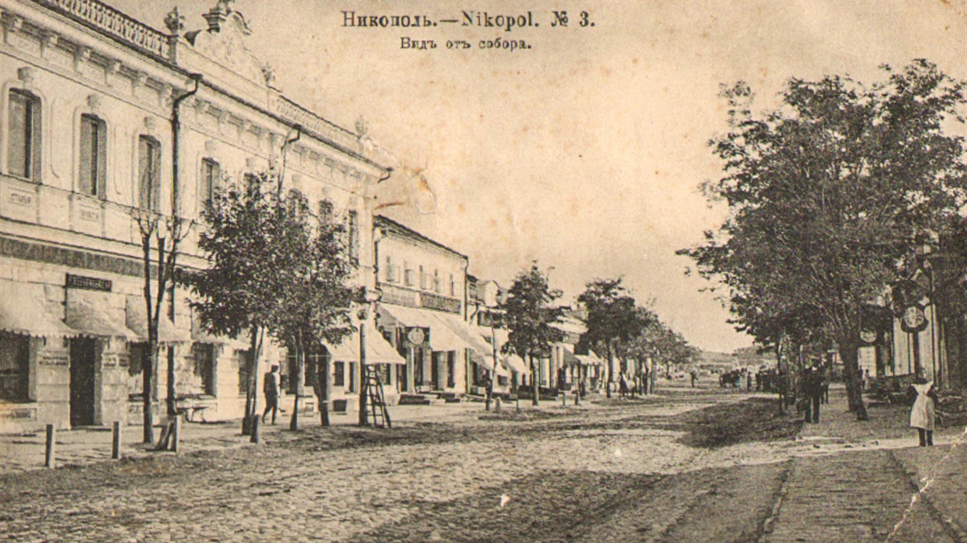 В 1900 году его 21 282 жителя были украинцами , евреями и меннонитами , которые занимались сельским хозяйством и судостроением. Немного выше по реке находилась старая Сечь , или укрепленный стан запорожских казаков , блестяще описанный в романе Н. В. Гоголя « Тарас Бульба» (1834 г.). Ряд могил в окрестностях напоминает о битвах, которые велись за владение этим важным стратегическим пунктом. В одной из могил, недалеко от города, наряду с другими скифскими древностями находилась знаменитая драгоценная ваза, изображающая отлов диких лошадей. Даже сейчас Никополь, расположенный на трассе Днепр- Херсон , является точкой пересечения Днепра «соляной магистралью» чумаков (украинских соледобытчиков) в Крым . Никополь, кроме того, является одним из главных пунктов на нижнем Днепре по экспорту кукурузы, льна, конопли и шерсти.