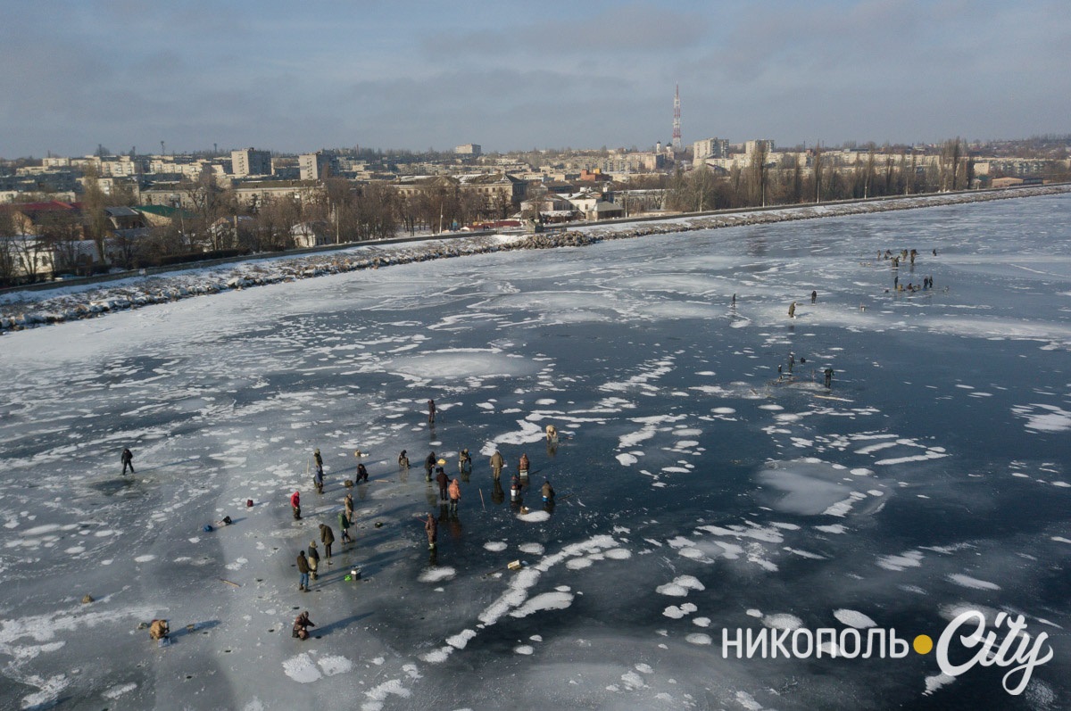 До строительства Каховского водохранилища Никополь омывали воды Днепра. В 1950-х годах принимается решение создать искусственное море. Под водами навсегда исчезли Днепровские плавни, скифские курганы и места Запорожских Сечей. Для многих людей создание искусственного водоема стало большой трагедией, ведь они вынуждены были покидать родные села, которые подлежали затоплению. Во время постройки водного резервуара Никополь посетил кинорежиссер Александр Довженко, который снял об этом событии фильм Поэма о море . В общении с простыми жителями он часто слышал фразу: Нове наше море — нове наше горе . И действительно, водохранилище создало ряд проблем. В нынешнее время проблемой для никопольчан стало регулярное летнее цветение водорослей в воде. Из-за этого в примыкающих к воде районах стоит специфический запах.