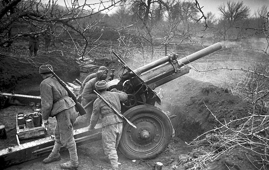 - Артиллерийский расчет ведет огонь по врагу на подступах к Одессе