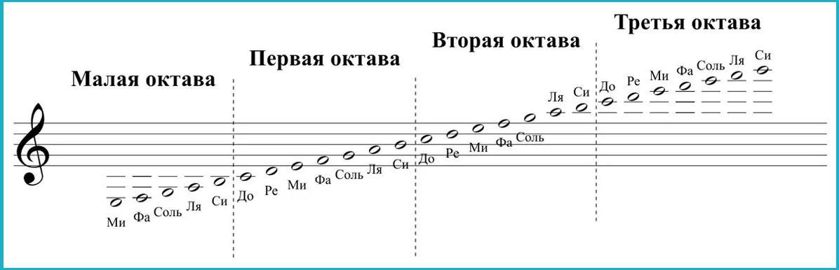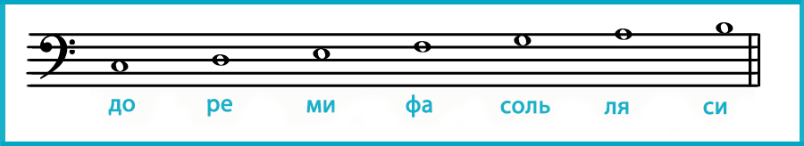 Октава состоит из семи «белых» клавиш (названия расположены в порядке возрастания):