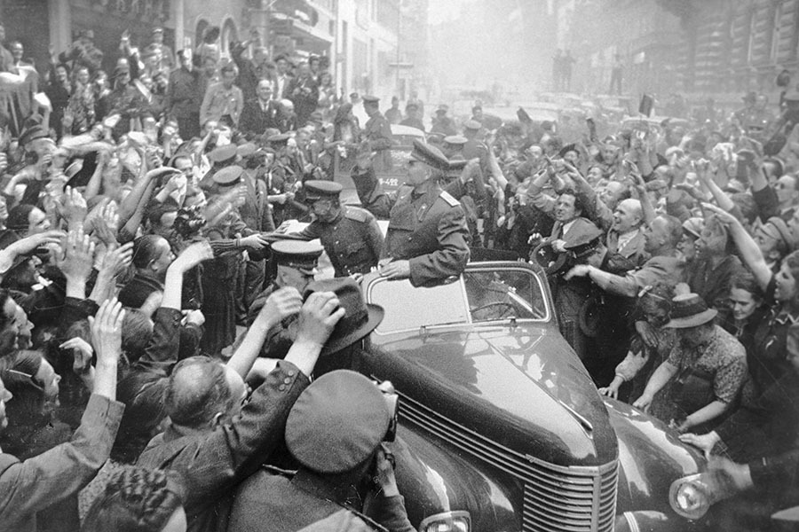 - Жители Праги встречают маршала Ивана Конева и других советских воинов-освободителей