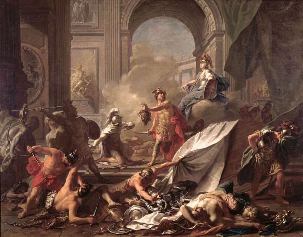 Жан-Марк Натье «Персей, под защитой Минервы, превращает Финея в камень размахивая головой Медузы»Местонахождение: Музей изящных искусств, Труа, Франция