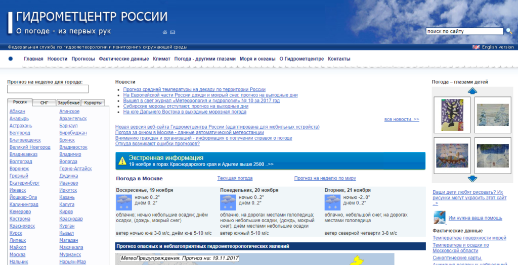 Это по праву самый известный и популярный сайт, на котором можно посмотреть прогноз погоды. Сайт создан Гидрометцентром России. Это специальный научно-исследовательский центр Российской Федерации. Данные, которые показывает сайт, могут быть не самыми точными, но самые лучшие на территории РФ, как установило сравнение с другими сайтами. Гидрометцентр получил такой статус научного центр страны еще в 1930 году. Поэтому точно и лояльность данных обеспечена.