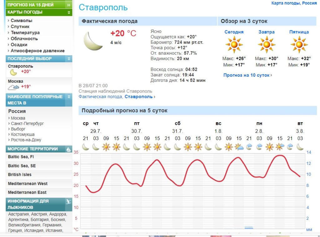 Самые популярные сайты с прогнозом погоды даны ниже:
